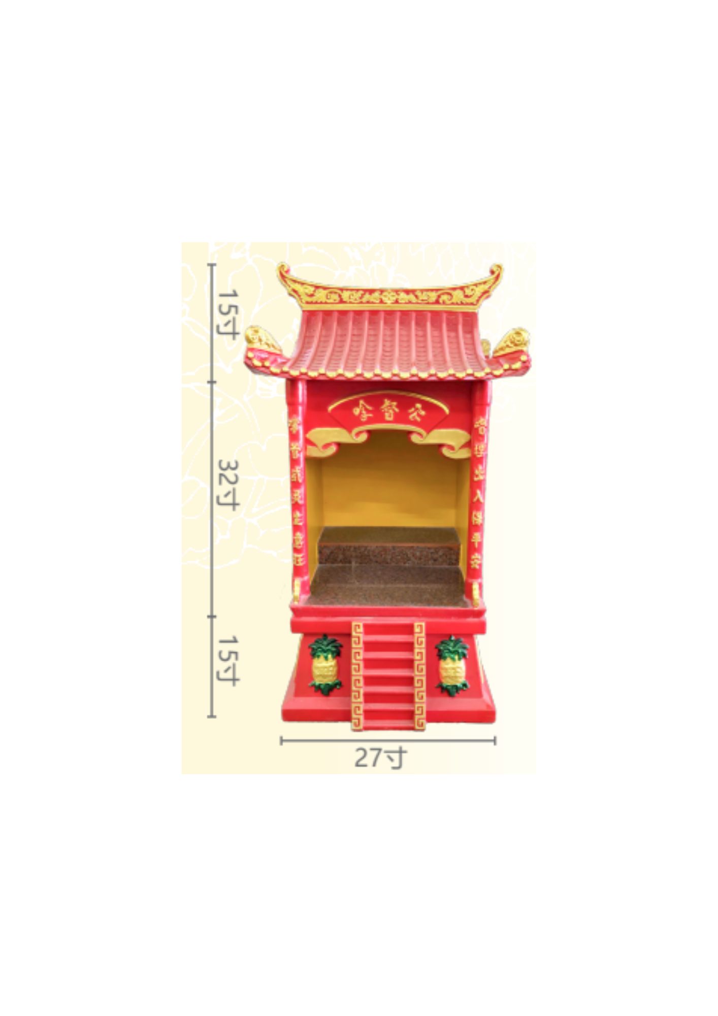 宽:27寸,深:27寸,脚高:16寸,屋身:47寸,总高63寸