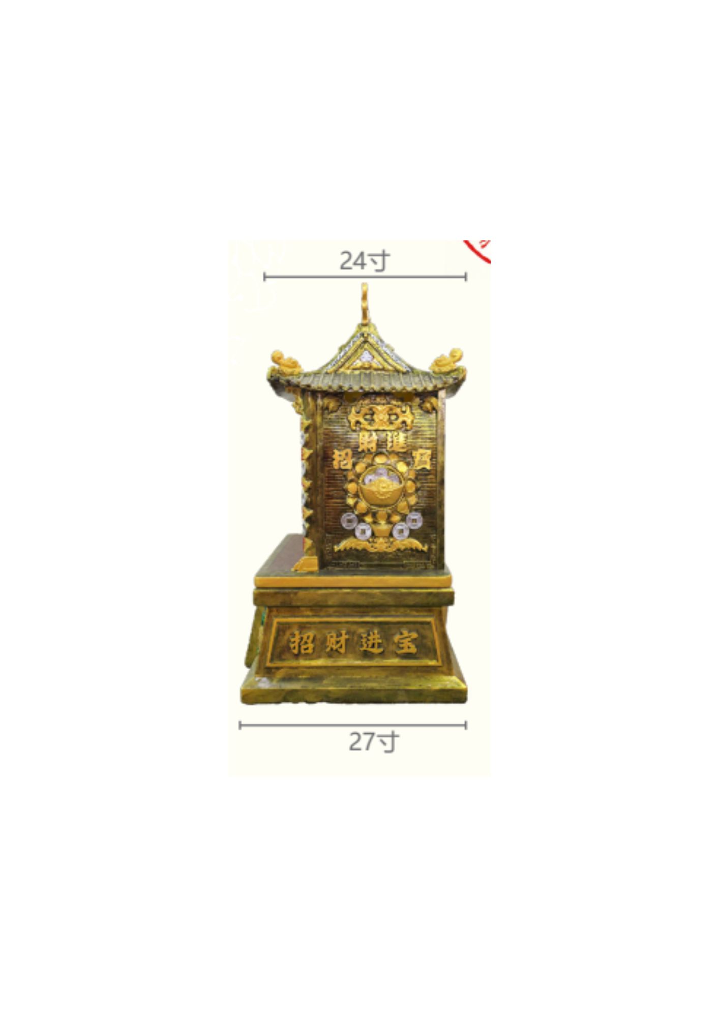 宽:27寸,深:27寸,脚高:16寸,屋身:41寸,总高57寸